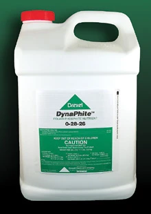 DynaPhite 0-26-28 is both a foliar and soil-applied plant nutrient. It treats available phosphate and soluble potash deficiencies in permanent crops and field crops, as well as golf course turf, cool and warm season turfgrasses, commercial greenhouse and landscape lawn care, sod farms, ornamental and nursery crops, and perennials and annuals. It can be applied as both a foliar and soil-applied plant food.