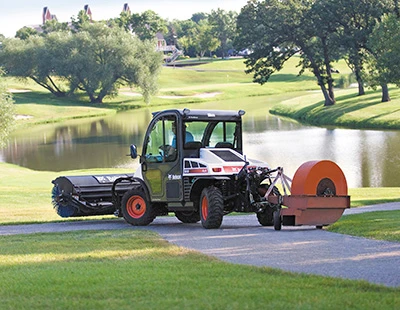 The versatile 61-horsepower 5600 and 5610 Toolcat utility work machines combine the most productive features of a pickup truck, tractor, skid-steer loader and utility vehicle. Both machines are compatible with more than 40 approved front-mounted attachments for dozens of jobs, from snow removal to sweeping to installing fences. The 5610 allows operators to use front-mounted attachments, as well as PTO and rear remote hydraulics to power Category 1, 3-point hitch implements or attachments. These capabilities increase the functionality of a Toolcat machine, and help create a high level of utilization on college campuses, parks, airports, farms, acreages and a variety of other applications.