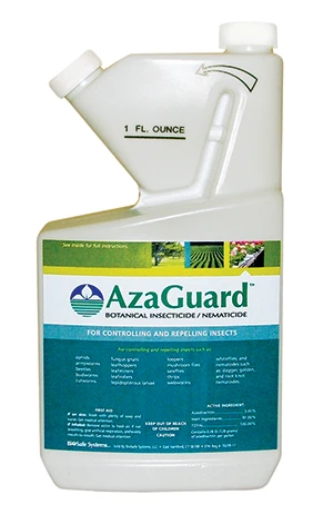 The BioSafe Systems program for nematode/disease reduction is a tank mix of ZeroTol® 2.0 and AzaGuard®. ZeroTol 2.0 is a broad spectrum bactericide/fungicide with proven efficacy against Pythium and Phytophthora. AzaGuard is a multi-mode of action nematicide that stops feeding, egg laying, and is effective as an insect growth regulator. Together, the two chemistries have been proven to be an effective tank mix drench application. Existing conditions require 3 applications repeated every 7–21 days. Once nematodes are suppressed a monthly maintenance program can be initiated.