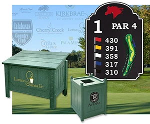 Standard Golf has added several new premium Green Line products to their rapidly expanding line of “green” golf course accessories. The Green Line brand represents a wide range of durable, recycled plastic products that are environmentally friendly, weather-resistant and easy to customize.