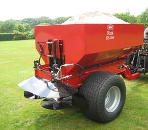 Our new topdresser, model DS2000 is a trailed unit with four pivoting wheels and a capacity of 2.6 cubic yards. It features optional twin spinners cable of spreading material up to 40 feet wide. The machine is one in a line of a dozen hydraulically driven topdressers that make up our company’s complete range in the North American market.