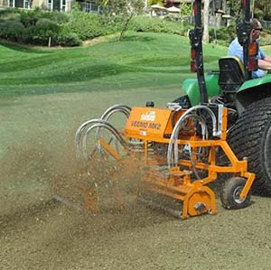 The SISIS Rotorake TM1000 is a tractor mounted unit which is now available with five quick release interchangeable reels to aid the removal and control of thatch and help reduce standing surface water by improving water infiltration.