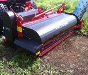 The Turf Stripper is a rugged, economical and efficient machine used to mow, level, de-thatch and renovate turf areas using a rotary action that removes material and deflects it onto a conveyor to be carried away. The Turf Stripper 2000 is equipped with custom blades that allow the machine to be highly productive, yet can be adjusted in small increments. An option verti-cut blade kit can be installed in place of the standard blades when the machine is to be used for verti-cutting fairways, sports-fields or common areas. The machine is also a highly effective method of harvesting sprigs when trying to introduce Bermuda and other grasses to new areas.