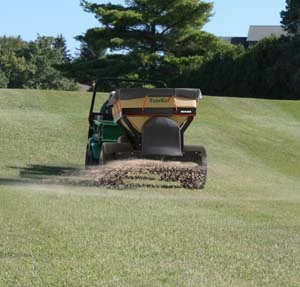 In addition to the MS4500, TurfEx offers two other topdressers, the MS1875 and MS2000. Designed to mount on tractors or utility vehicles, the units are equipped with an auger for feed and control of bulk material, including compost, pelletized lime, topdressing, and other granular products. The MS1875 offers a 9 cubic-foot capacity hopper with a 3-point hitch mount, while the MS2000 has an 11 cubic-foot capacity hopper and mounts to the bed of utility vehicles.