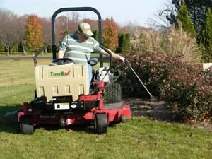 | The new US250 sprayer from TurfEx features a universal mount that allows it to attach to the front of most available zero-turn mowers. This unique mounting system stays within the mower’s footprint, unlike competitive tow-behind units. Furthermore, the US250 is completely electric powered, meaning there are no engines or hydraulics to maintain. Driven by a 12-volt electric motor, the sprayer draws its power from the mower’s battery. The pump is rated at 2 gallons per minute at 60 psi, and the corrosion-resistant polyethylene tank holds up to 25 gallons. To apply liquid, the US250 features an adjustable spray wand, which is attached to 25 feet of hose. This makes the unit ideal for many turf care applications, including weed spraying, tree and flower watering, and pest control. For extended versatility, the US250 is available with an optional 48-inch, front-mounted boom for spraying directly to the ground. Also available is the boomless spray head, which uses a single nozzle to spray liquid up to a 15-foot wide pattern. Like all TurfEx products, the new sprayer comes standard with a two-year limited warranty. Besides the sprayer, TurfEx also offers spreader, sweeper, dethatcher and leaf pusher attachments for zero-turn mowers. Each one utilizes an innovative mount system for quick attachment, allowing the operator to efficiently switch from one task to another. TurfEx is a product division of TrynEx International. Other TrynEx brands include SnowEx winter maintenance equipment, and SweepEx broom attachments. For more information, contact TrynEx International, 531 Ajax Drive, Madison Heights, MI 48071, call 866-5TURFEX or 248-586-3500, fax 248-586-3501, e-mail info@trynexfactory.com or visit www.trynexfactory.com. |