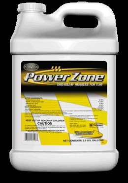 PowerZone contains an advanced chemistry for broadleaf weed control in turf. The mode of action inhibits a key enzyme in chlorophyll production. Generally, injury symptoms to weeds can be noticed within hours of the application and plant death can occur within 7 to 14 days.
