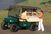 Expands the refreshment vehicle lineup Features a custom-built snack/beverage unit by 19th Hole Marketing ST model has a frame made of hot-dipped, galvanized channel and tubular steel Powered by an 18-hp, 614-cc, V-twin air-cooled Honda engine Golf cars/carts